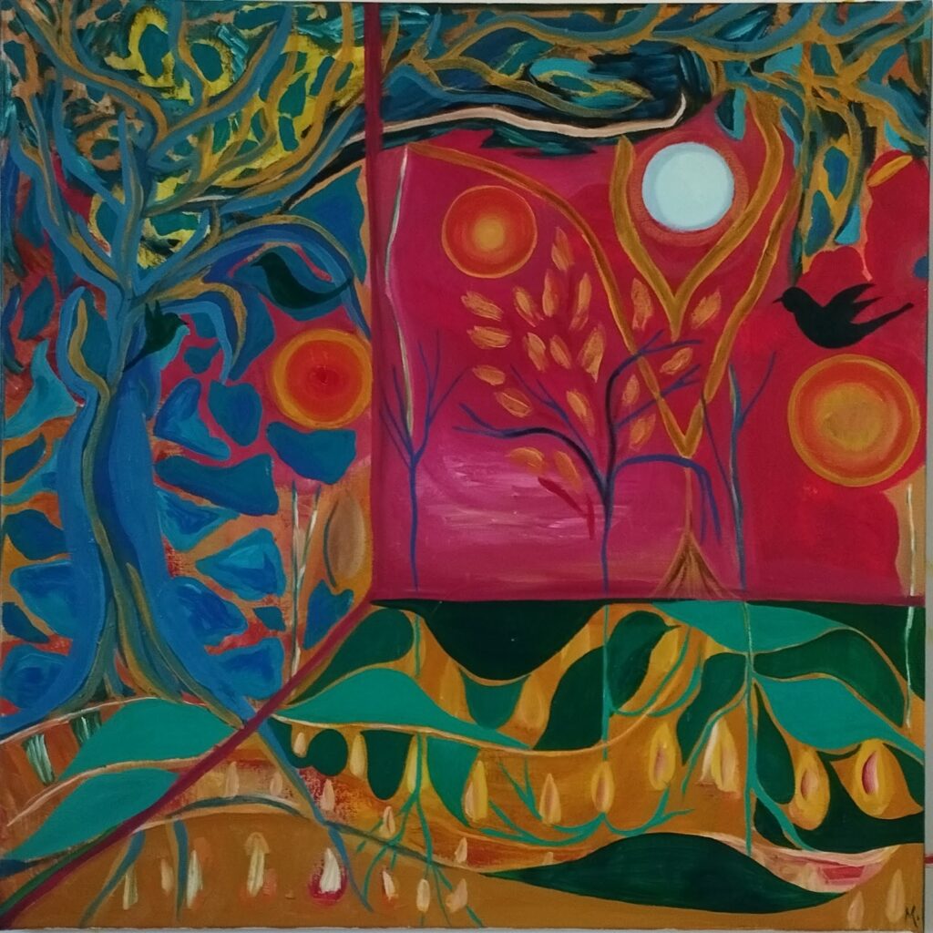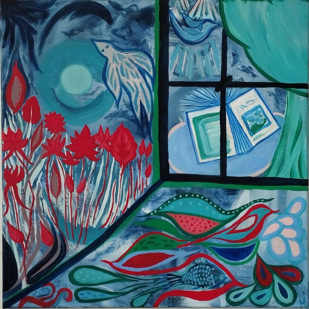 Portfolios « Au-delà de la fenêtre » acrylique. Lin sur châssis de bois. 80 x 80 cm « Eau vivante » Acrylique sur toile de jute tendue sur châssis bois 100 x 80 cm « La magicienne (jeune) Huile. Lin tendu sur châssis 80 x 80 cm « Pluie printanière » acrylique. Lin sur châssis bois 80 x 80 cm « Un autre monde » Huile. Lin sur châssis bois 80 x 80 cm « Autour de la rivière » Huile . Lin sur châssis bois 80 x 80 cm « Éléments : galerie de portraits. » Acrylique sur toile de jute. 113 x 60 cm « Beaucoup d’histoires » Huile. Lin sur châssis bois. 80 x 80 cm Cadre type caisse américaine noire « Générosité » Huile Lin sur châssis bois. 80 x 80 cm Cadre type caisse américaine noire « Wild flowers » Huile LIN sur châssis bois. 80 x 80 cm avec cadre type caisse américaine noire « Bourdonnant, frémissant, chante l’espoir végétal. » Huile sur acrylique. LIN. Châssis bois. 80 x 80 cm Charger plus En cours de chargement… Vous avez atteint la fin de la liste
