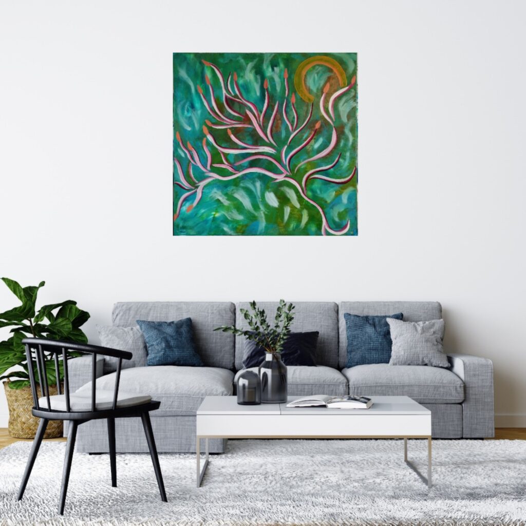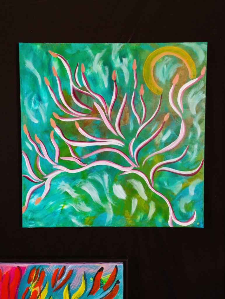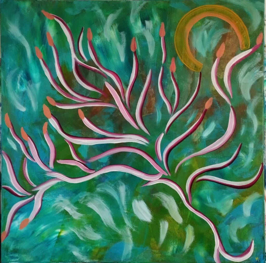 Une peinture du Chant des éléments, pour ressentir le frémissement des bourgeons prêts à s’ouvrir, et se détendre avec les verts dominants dans ce tableau.